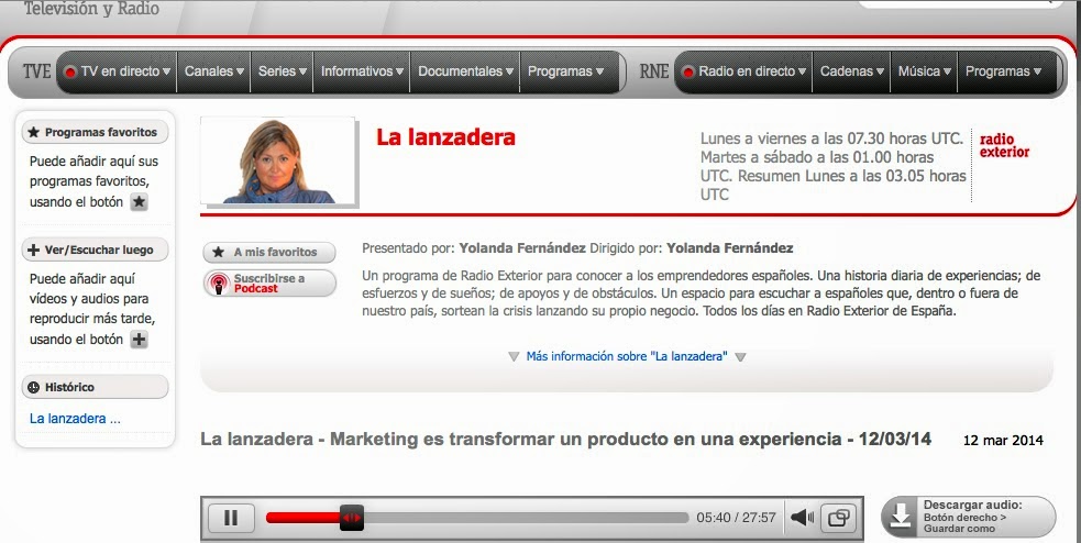 Hoy he salido en el programa «La Lanzadera» de RNE, hablando sobre marketing de producto, versus marketing de experiencias, representando a EOI.