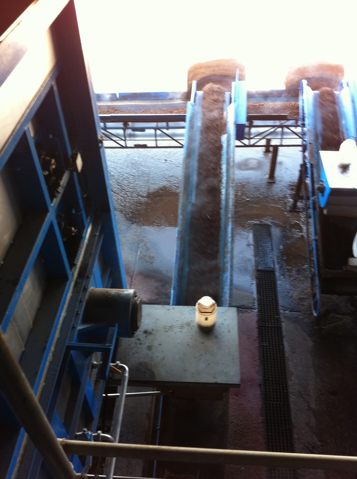 Ayer os conté mi visita a la Cooperativa Virgen de las Viñas en Octubre y descubrimos que desde la uva que entraba en los remolques se sacaban dos productos: el zumo de uva (que acababa en las cubas de acero inox) y el orujo que subía directamente a un trailer.